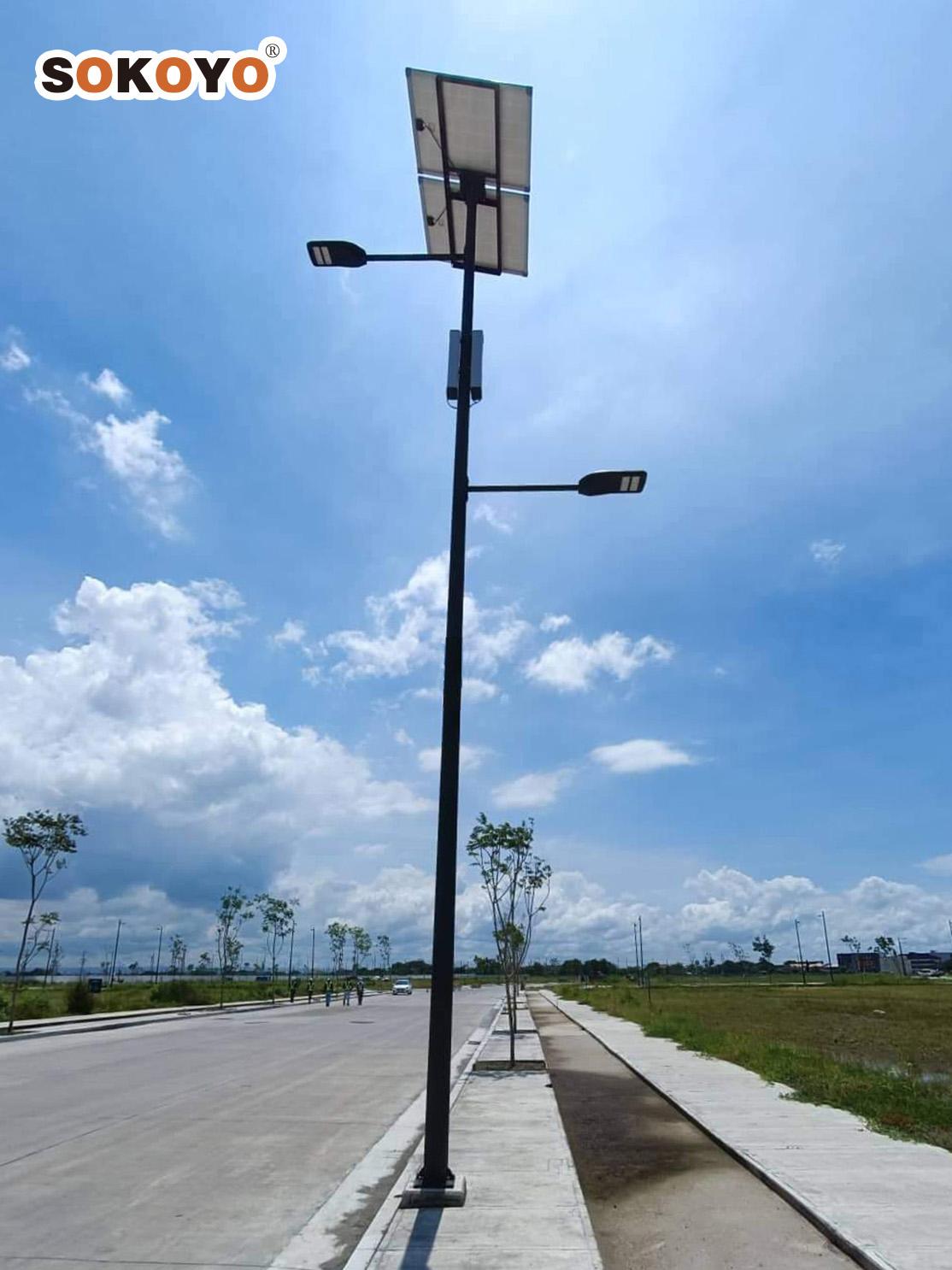 應(yīng)對全球變暖的趨勢、實現(xiàn)可持續(xù)的發(fā)展,如何面對人類的生存發(fā)展與資源短缺日益尖銳的矛盾,大力推進(jìn)科技進(jìn)步,開發(fā)可再生能源等節(jié)能減排新技術(shù)成了近幾年的關(guān)鍵詞,而新能源的開發(fā)和利用已然成為全球各個國家的積極選擇。SOKOYO結(jié)合當(dāng)?shù)爻渥愕墓庹蘸筒煌穆窙r,在與客戶溝通后,決定采用8M 120W的和諧分體式太陽能路燈,量身定制了適合當(dāng)?shù)氐缆返奶柲苈窡艚鉀Q方案。